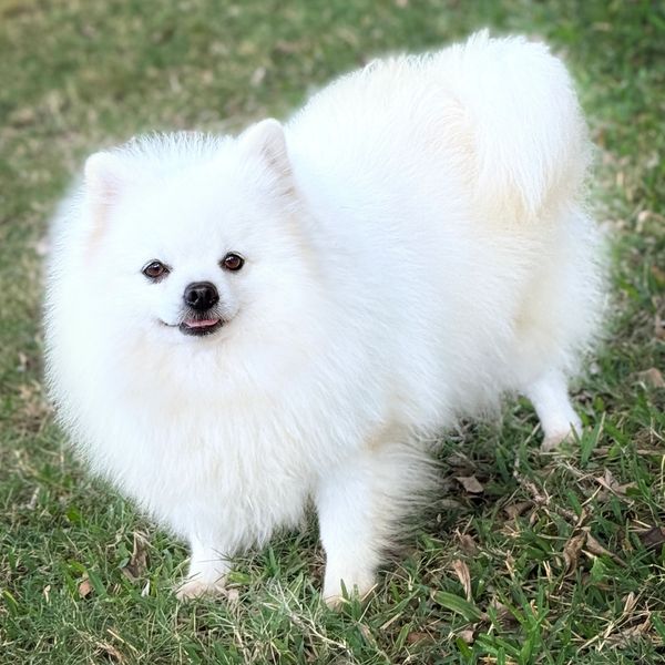 With her pristine, ice-white fur Puff is a true vision of beauty. She has a sweet demeanor and is very playful and cuddly.